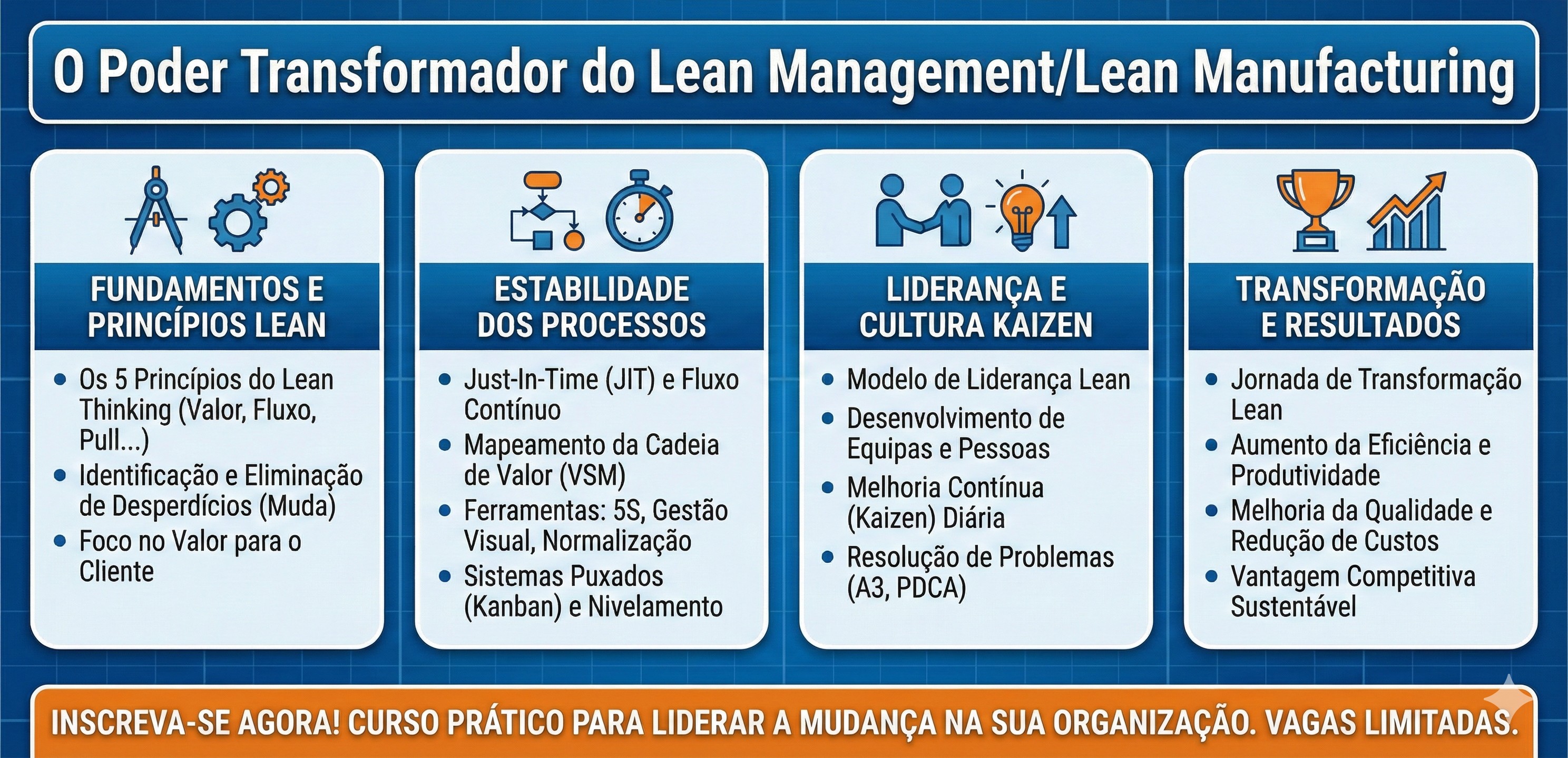•Compreender o papel da Liderança Lean na promoção e sustentação de uma cultura de melhoria contínua.